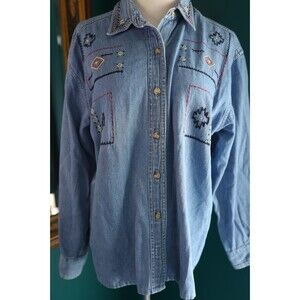 Vintage 90s Upper West Side Embroidered Aztec Western Demin Button Down
