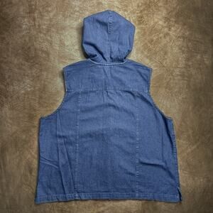 Vintage 90s VJ Woman Blue Autumn Patchwork Sleeveless Zip Up Hooded Vest