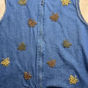 Vintage 90s VJ Woman Patchwork Fall Foliage Sleeveless Zip Up Denim Hooded Fall