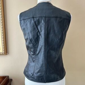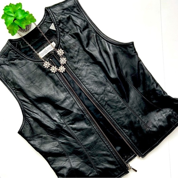 This Vintage 90s Y2K black lamb leather sleeveless jacket vest from Valerie Stevens is gorgeous!