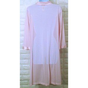 Vintage 90s Vanity Fair Dressing Gown Robe -M Pocket Collar Floral LS Nylon Pink