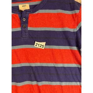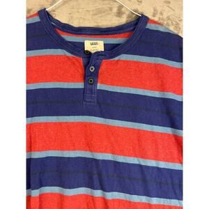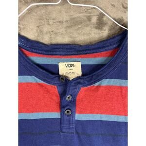 This vintage Vans shirt is a must-have for any 90s enthusiast. The blue striped pattern and collared neckline give it a classic look, while the short sleeves and button closure make it perfect for casual wear. Made from comfortable cotton material, this shirt comes in size L and has a regular fit. The Vans brand adds a touch of skateboarding style to this wardrobe staple, making it a versatile piece for any occasion. Whether you're going for a laid-back look or dressing up for a night out, this shirt is sure to make a statement.