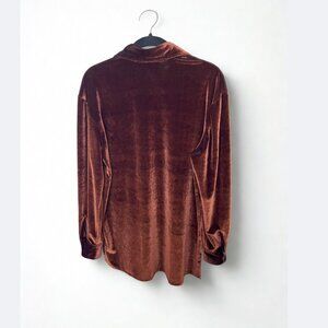 Vintage 90s Velvet Button Down Shirt Brown Oversized Casualaire Size M