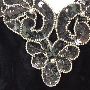 Vintage Deadstock 90s Size S/M Black Velvet Floral Sequin Strappy Mini Prom Dress