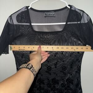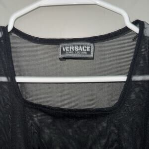 Vintage 90s Versace Jeans Couture Woman’s Black Sheer Mesh Top Floral Gradient S