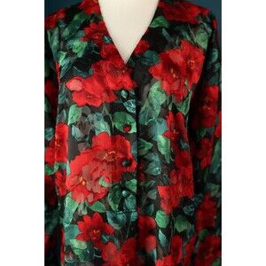 Vintage 90s Victoria's Secret Floral Burnout Button Gold Label Sheer Nightie L