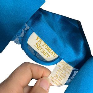 Vintage 90s Victorias Secret Gold Label Blue Lace Short Robe One Size