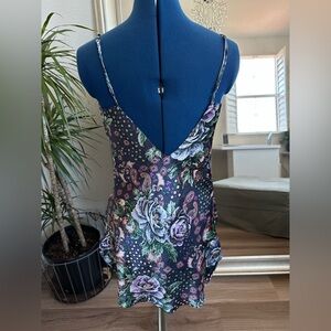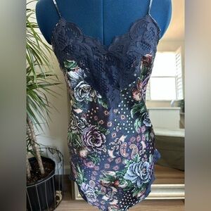 Vintage 90s Victoria's Secret Gold Label Satin Floral Slip Chemise Navy Lace
