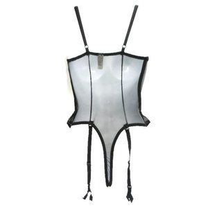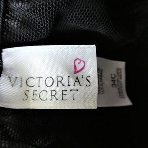 Vintage 90s Victoria's Secret Lingerie Teddy Underwire Black Garter Rosettes 34C