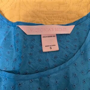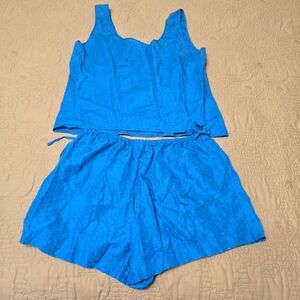 Vintage 90’s Victoria’s Secret PJ Set S Blue Floral Tank Micro Shorts Eyelet