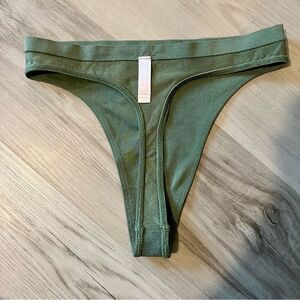 Vintage 90’s Victoria’s Secret nightgown in Good used condition. Keyhole neckline has slight hole as shown but not noticeable. Stretchy, long flowing gown in a soft sheer mossy green knit. Slit up one leg as shown. Comes with matching vintage thong. Never used. Only removed from packaging to photo. Package has date of production stamped 2000. Stretchy, seamless, high cut thong in a beautiful forest green color, both gown and thong sz L.