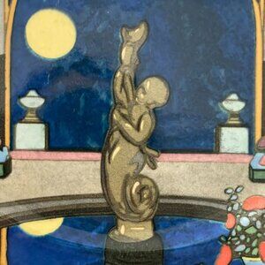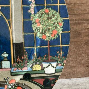 This romantic view of night in the garden under a full moon on an oversized 12" plate was intended to be used as a charger or service plate but it would also be used as a wall plate with the addition of a hanger (not included).