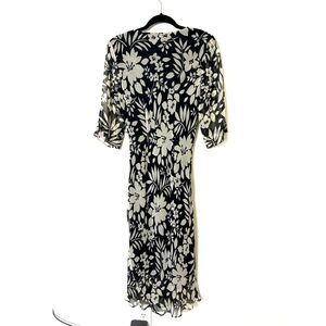 Vintage 90s Vision Apparel Dress Women's 6 Floral, Silk black and white summer