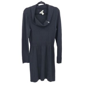Vintage 90s WHBM Cowl Neck Long Sleeve Ribbed Knit Sweater Dress XL Black