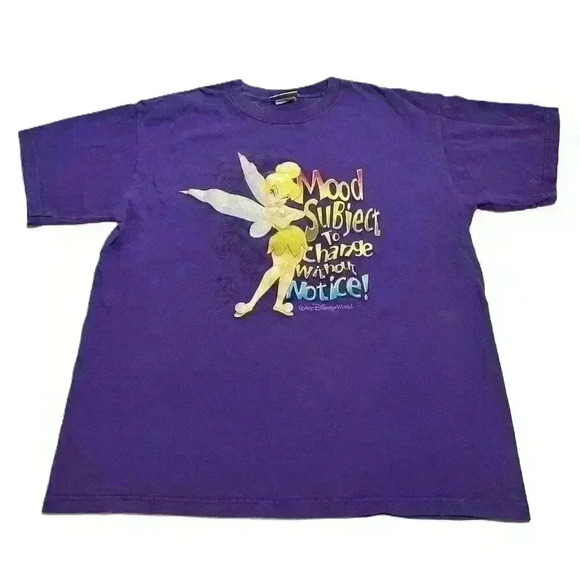 Vintage 90s Walt Disney Tinker Bell Peter Pan Graphic Quote T-Shirt Size Large