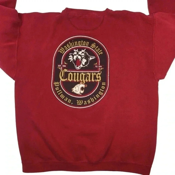 Vintage 90s Washington State Cougars Crewneck sweatshirt. Made in the USA. High-quality. Large: 24 inches pit to pit, 27 inches long. Rare vintage design. Excellent vintage condition, faded. Some cracking on the graphic. Smoke and pet free home. Vintage WSU. Cougars. Pullman Washington. WAZZU.