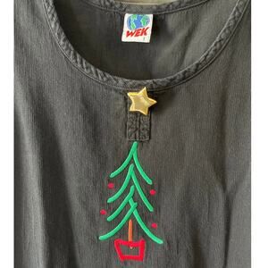 Vintage 90's Wek Tank Dress 100% Cotton Ribbed Christmas Tree Gold Star Size 1