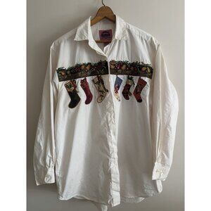 Vintage 90s Western Embroidered Button Down Shirt Christmas Stockings Medium