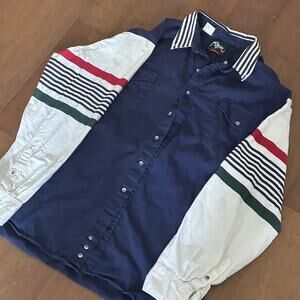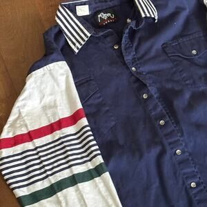 Blue and white vintage western button up shirt from the brand “Roper Sport”