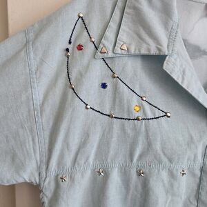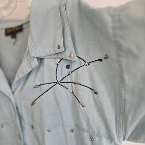 Vintage 90's Western Style Light Blue Embroidered Women's Button Up