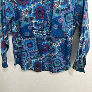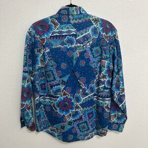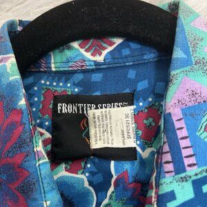 Vintage 90s Western Turquoise Southwest Aztec Shirt Sz XL Cowgirl Rodeo Artsy