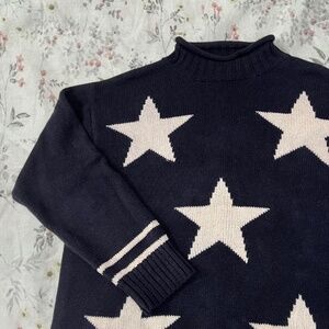 vintage 90s whimsigoth knit dark blue striped oversized sweater with star pattern