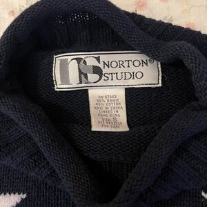 by norton studio, heavy weight ramie cotton blend, mock neck rolled neck, witchy celestial, runs large like modern medium & chunky boxy long and wide, **one run on the back, see last pic, doesnt affect wear**, see pics for measurements