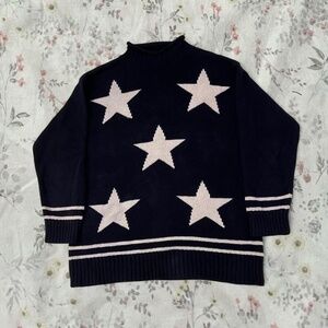 Vintage 90s Whimsigoth Star Sweater Cotton Ramie Mock Neck Striped Oversized
