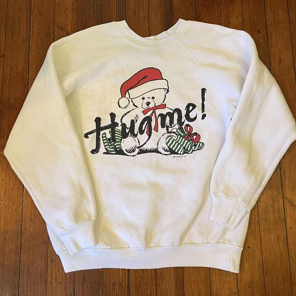 Vintage 90's White Christmas Bear Hug Me! Sweatshirt Sz Large BJ Design Concepts