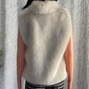 Vintage 90s White Faux Fur Vest Satin Lined Winter Glam Gilet Toggle Closure L