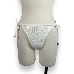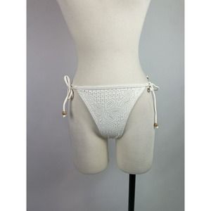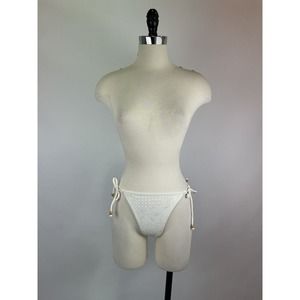 Vintage 90s White Mesh Tie Swimsuit Bottoms Sz Small