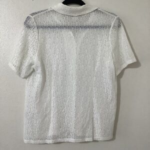 Vintage 90s White Sheer Lace Cottagecore Preppy Clean Girl Button Up Shirt S