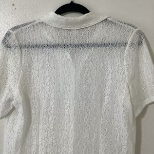 Vintage 90s White Sheer Lace Cottagecore Preppy Clean Girl Button Up Shirt S