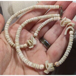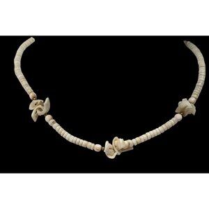 This vintage 90s necklace features elegant white shell chip beads, perfect for adding a timeless touch to any outfit. Its classic design complements casual and formal styles alike, making it a versatile accessory for any jewelry collection.