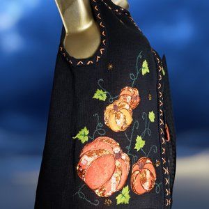 Vintage 90's White Stag Halloween Vest - Knit, Embroidered & Beaded - Pumpkins.
