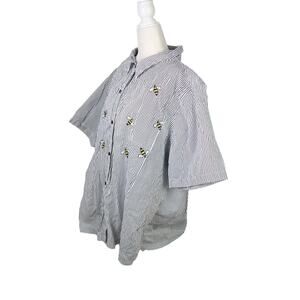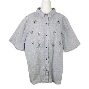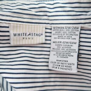 Vintage 90s White Stag white and navy blue striped button down top 22W
