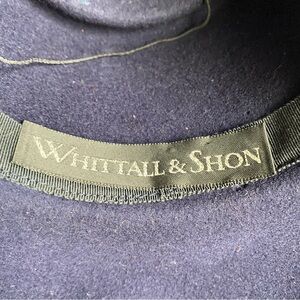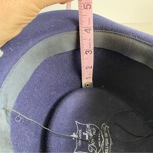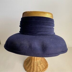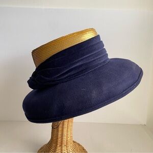 Vintage 90s Whittall & Shon Wool Sequin Hat Navy Blue Gold Wide Brim