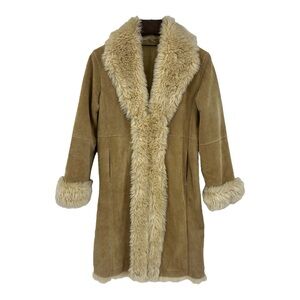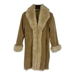 Vintage 90’s Wilson Leather Faux Fur Trim Maxima Suede Tan Penny Lane Coat SZ L