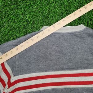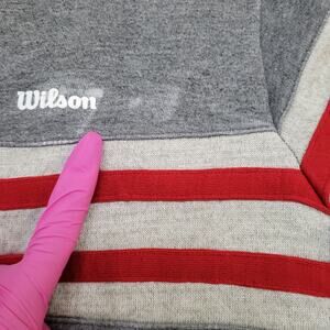 Serve bold 90s athletic vibes in this Wilson striped crewneck with red varsity lines and retro fit made in Taiwan.