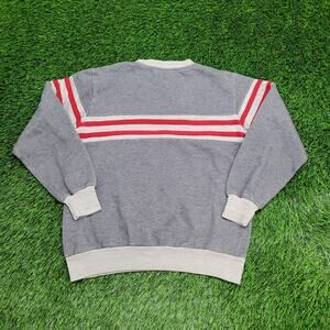 INTAGE 90S WILSON SWEATSHIRT MEDIUM, MADE IN TAIWAN WILSON CREWNECK, RED STRIPED ATHLETIC SWEATER, RETRO SPORTY SWEATSHIRT WOMENS, GRAY CREWNECK 90S STYLE, VINTAGE SWEATSHIRT, WOMENS CREWNECK, WILSON APPAREL, GRAY STRIPED SWEATER