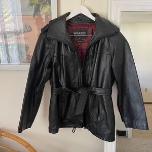 Vintage 90s Wilsons Leather Belted Hooded Jacket
