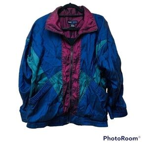 Awesome Vintage 90’s Windbreaker Jacket. Great bold colors. Nylon mix. Some damage to from pocket.