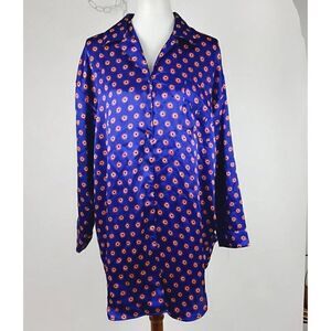 Vintage 90s Winston Select Blue Silky Button Down Pajama Shirt Dress Nightgown