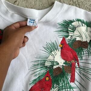 Vintage 90s Winter Cardinals Pine Tree White Crewneck Sweater. Sz M