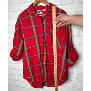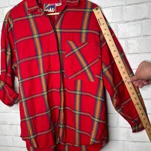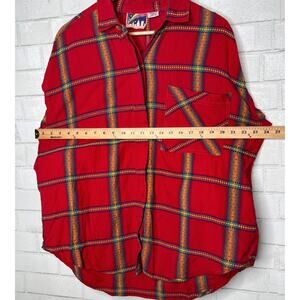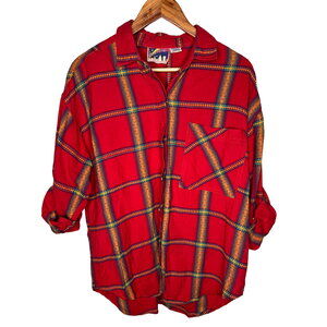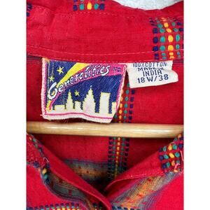 Vintage 90's Womans Plus Size 18 EMBROIDERED Cotton Plaid Button Down Shirt Red