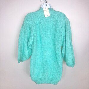 Vintage 90s Womens 20W Sweater Green Knit Collared 3/4 Sleeve New