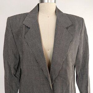 Vintage 90's Fundamental Things houndstooth print linen blend oversized menswear style blazer. Marked size 6 petite, see measurements for best modern fit. Unlined, light shoulder pads which can be removed. New with tags, old new stock, no flaws noted. Measurements are approximate, lying flat. 19" Bust pit to pit