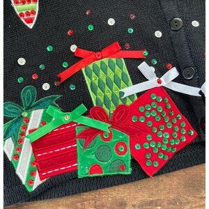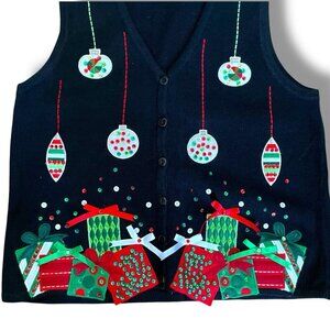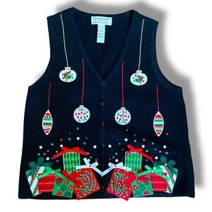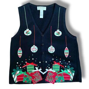 Vintage 90s Womens Christmans Sweater Vest Sz Large Tiara International Beaded