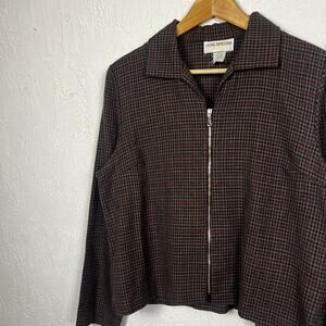 Vintage 90's zip up houndstooth blazer style jacket top in a brown color. Limitless styling options.