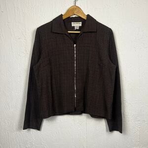 Vintage 90's Women's Houndstooth Zip Up Jacket Brown Large Boho Formal